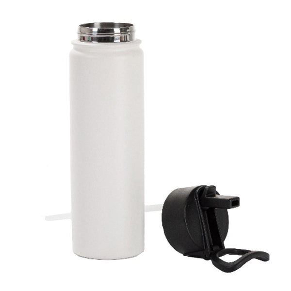 The flask's powder-coated finish not only enhances its resistance to scratches and wear but also provides a sleek, attractive look. Available in White, or Black, it allows for personal customization to suit your style or branding needs through laser engraving.