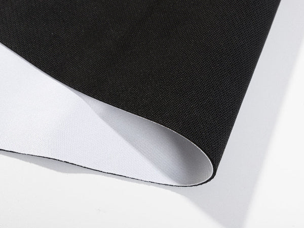 • 100% White Polyester Cloth with black rubber backing